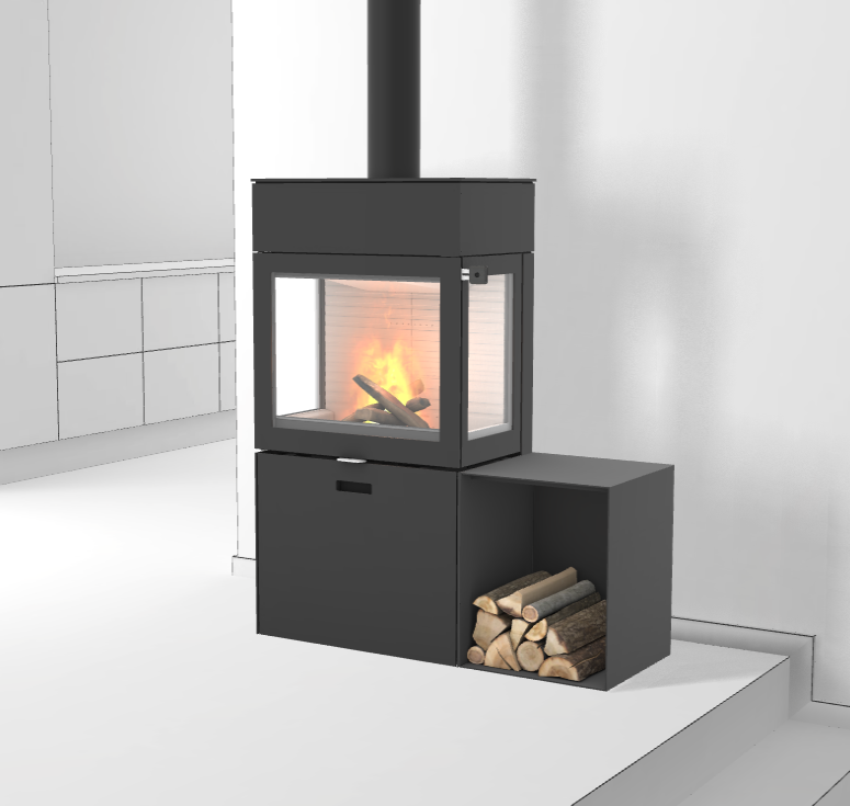 RAIS 600³ MAX brændeovn med glas i 3 sider inkl. sideboks